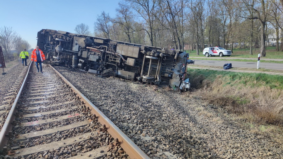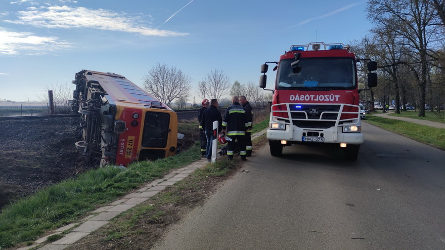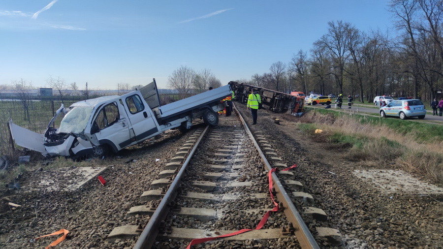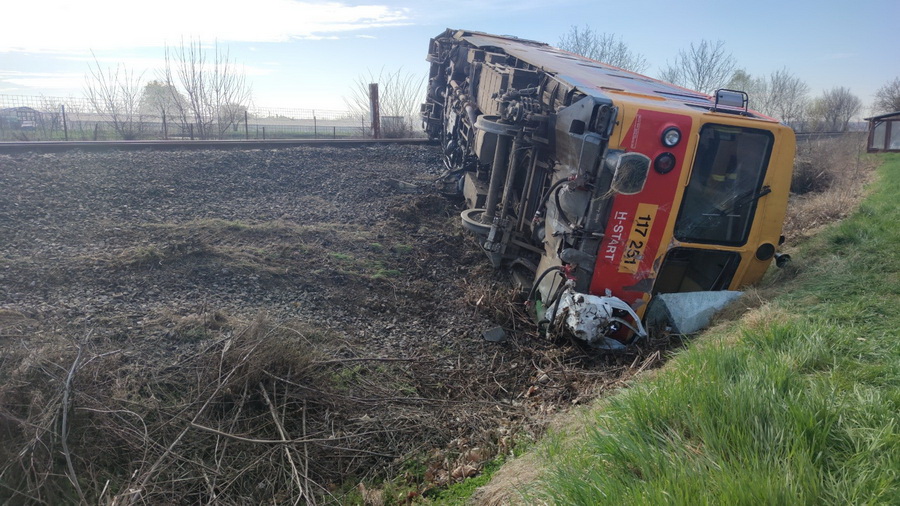 - Mindszent mellett történt vasúti-átjáró balesetben résztvevő felborult motorkocsi