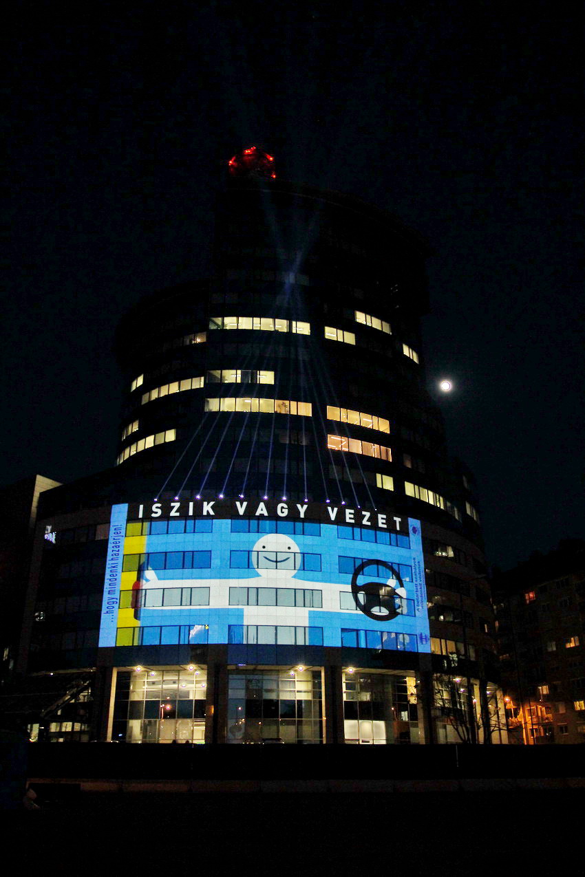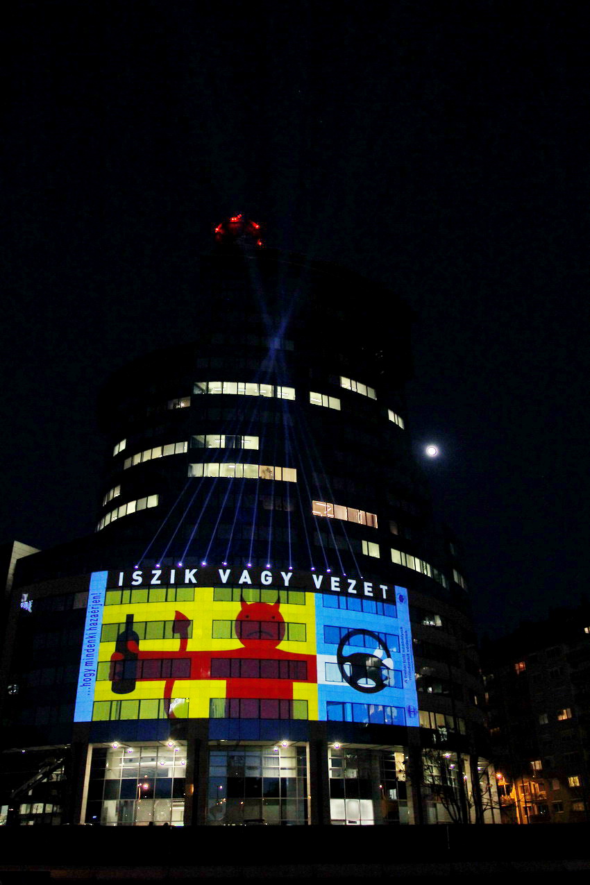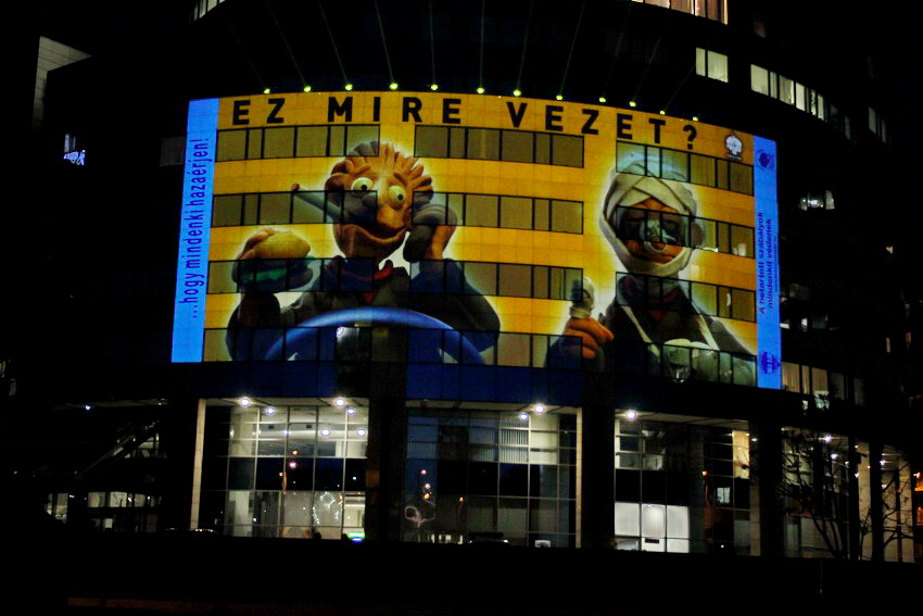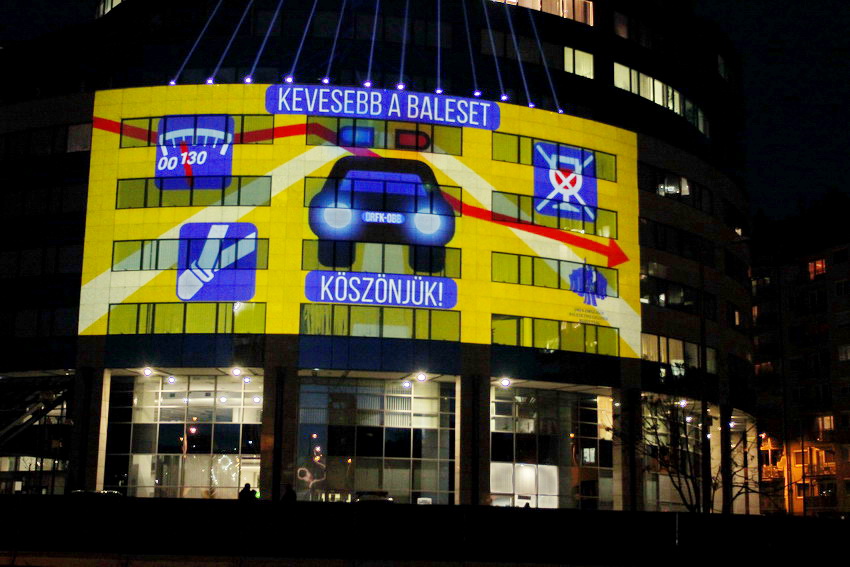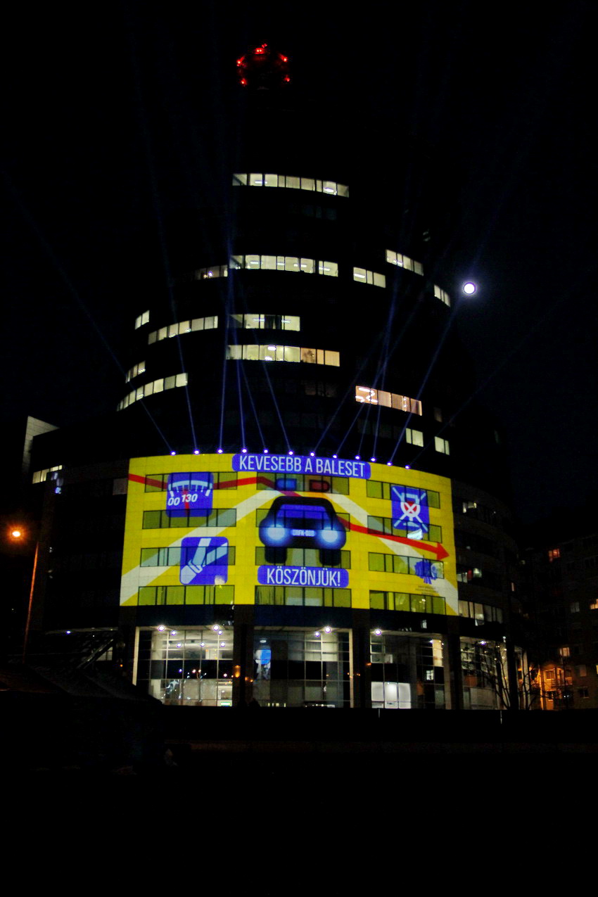 Fény-animáció a rendőrség központi épületén