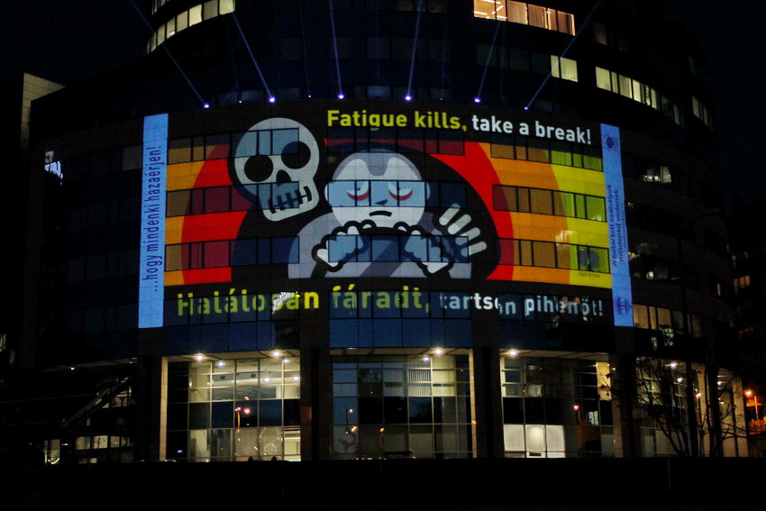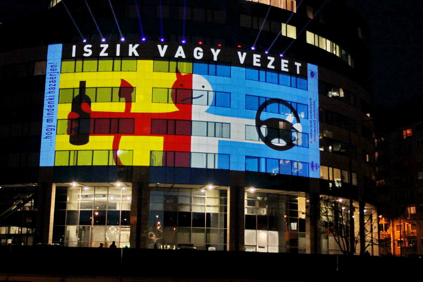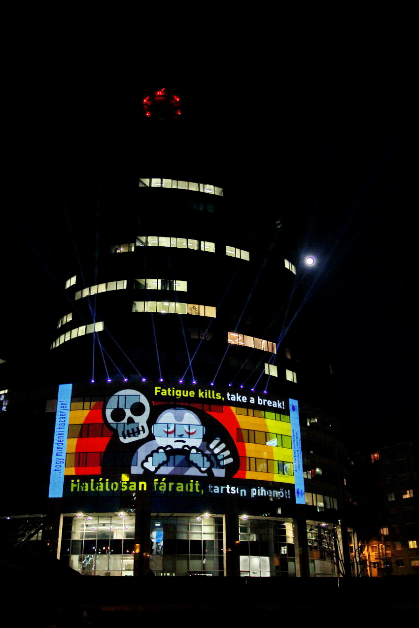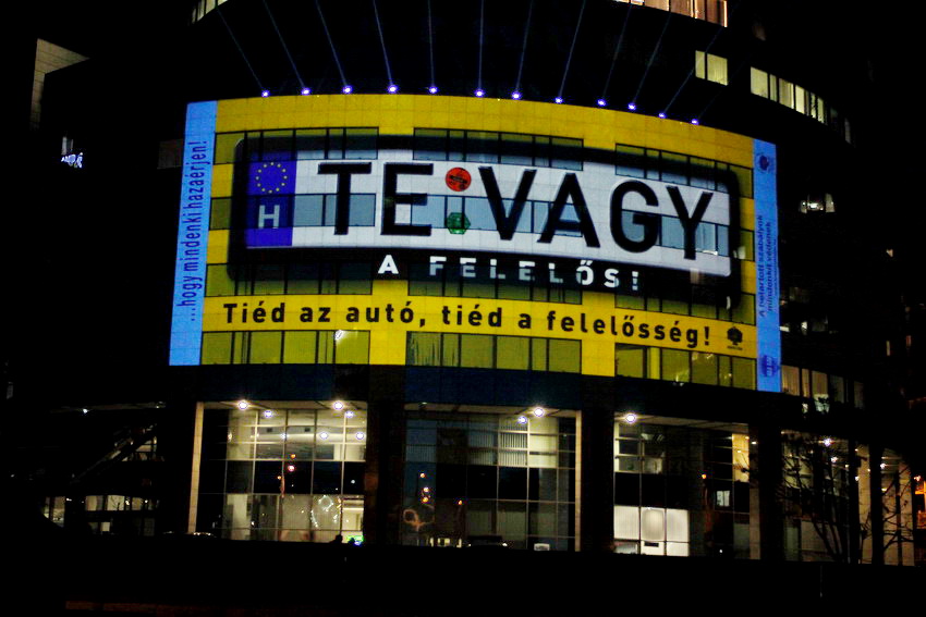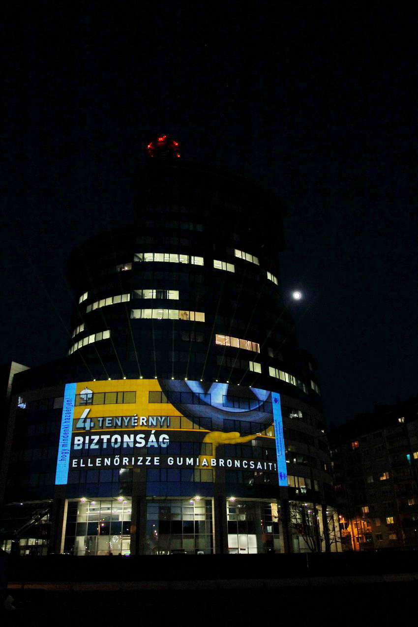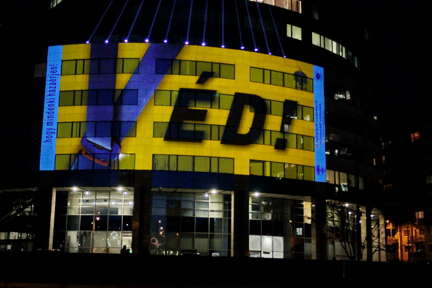Fény-animáció a rendőrség központi épületén