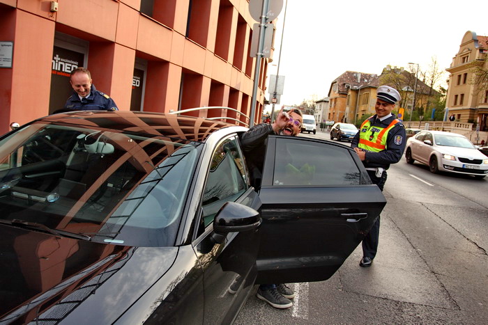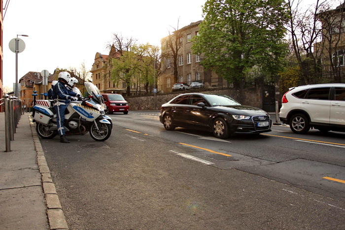 Elrajtolt a kötelék. A protokoll szerint a szabályszegésen ért autó kiemelésében és leállításában a rendőrmotorosok segítik a vadászautót. Mivel a fekete Audi szépen belesimult a forgalomba, belátni alig lehet, a motorosok távolabbról követték. Mivel gyorsak és mozgékonyak bármikor befoghattják a megállításra érdemes szabálysértőket. Az A3 szedán bal hátsó ülésén Rákóczi Feri a sebességmérő készülék operátora mellé ülhetett, az autó így meg is telt. Hiszen a jobb első ülést a technika foglalja el.